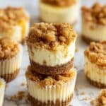 These Apple Crisp Mini Cheesecakes are the perfect handheld dessert combining creamy cheesecake, tender spiced apples, and a crunchy oat streusel topping all nestled in a graham cracker crust. Ideal for fall gatherings or anytime you crave a comforting yet elegant sweet treat, each mini cheesecake is finished with a drizzle of caramel sauce for extra indulgence.