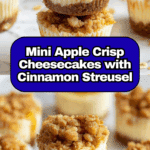 These Apple Crisp Mini Cheesecakes combine creamy cheesecake with a tender apple topping and a crunchy streusel. Perfect for individual servings, they offer a delightful balance of flavors and textures that are sure to impress your guests or satisfy your sweet tooth.