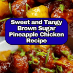 A delicious and tangy Brown Sugar Pineapple Chicken recipe featuring tender chicken pieces baked in a sweet and savory pineapple glaze. This dish combines the rich flavors of brown sugar, soy sauce, and pineapple chunks, with a hint of ginger and garlic, resulting in a beautifully caramelized and flavorful meal perfect for an easy weeknight dinner.