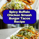 Buffalo Chicken Smash Burger Tacos combine the spicy kick of buffalo chicken with the fun, handheld convenience of tacos. Perfect for a quick weeknight dinner, these tacos feature juicy, smashed chicken patties topped with a creamy ranch slaw for a delightful balance of flavors and textures.