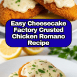 Enjoy a deliciously crispy and cheesy chicken dish inspired by Cheesecake Factory’s Crusted Chicken Romano, made easy at home. This recipe combines a flavorful breadcrumb and cheese crust with tender, juicy chicken breasts for a satisfying meal.