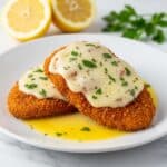 Enjoy this easy homemade version of Cheesecake Factory’s Crusted Chicken Romano. Tender chicken cutlets are seasoned, coated in a crispy blend of Panko breadcrumbs, Romano cheese, and lemon zest, then pan-fried to golden perfection and topped with melted mozzarella cheese for a deliciously cheesy finish.
