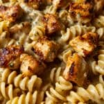 - Step 5: Return the cooked rotini and chicken to the skillet. Toss everything to coat well in the cheesy Cajun garlic sauce. Let simmer for 2–3 minutes to allow the flavors to meld together.