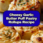 These Cheesy Garlic Butter Rollups are a delicious and easy appetizer made with flaky puff pastry, garlic butter, and a blend of mozzarella and Parmesan cheeses. Perfectly baked until golden brown, these rollups are great for parties or a savory snack paired with marinara sauce.