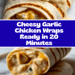 Cheesy Garlic Chicken Wraps are a quick and flavorful meal perfect for busy weeknights. Tender, seasoned chicken combined with melty cheese and creamy garlic sauce wrapped in a warm tortilla makes for a satisfying and delicious dish everyone will love.