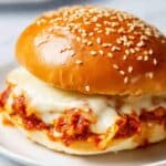 Chicken Parmesan Sloppy Joes are a delicious twist on classic sloppy joes, featuring lean ground chicken cooked with marinara sauce, basil pesto, and Parmesan cheese, all served on toasted brioche buns with a melty mozzarella topping. This easy stovetop recipe combines Italian flavors with a comforting sandwich, perfect for a quick weeknight dinner.