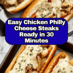 Chicken Philly Cheese Steaks are a delicious twist on the classic sandwich, featuring tender, thinly sliced chicken with sautéed peppers and onions, all melted together with provolone cheese. Ready in under 30 minutes, this hearty and flavorful meal is perfect for a satisfying weeknight dinner.