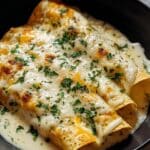 Chicken enchiladas with sour cream white sauce offer a creamy, comforting twist on the classic Mexican favorite. Filled with seasoned shredded chicken and melted Monterey Jack cheese, this dish is perfect for a satisfying weeknight dinner or casual gathering.