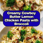 This Cowboy Butter Lemon Bowtie Chicken with Broccoli is a flavorful, comforting dish perfect for weeknight dinners. Tender chicken, crisp broccoli, and al dente bowtie pasta are tossed in a zesty lemon butter sauce with a hint of Cajun spice. It’s quick to make and deliciously satisfying.