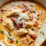 A rich and comforting Creamy Chicken Parmesan Soup that combines tender shredded chicken, savory tomatoes, and melted Parmesan cheese in a smooth, flavorful broth. Perfect for a cozy meal, this soup delivers all the classic tastes of chicken Parmesan in a warm, creamy bowl.