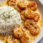 - Serve: Spoon the shrimp and creamy sauce over warm cooked rice of your choice. Garnish with fresh parsley or green onion and serve immediately for a comforting meal.
