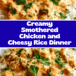 Creamy Smothered Chicken and Rice is a comforting, flavorful dish perfect for any night of the week. Tender chicken breasts are seared to golden perfection and smothered in a rich, cheesy sauce served over fluffy rice. This one-pan meal is both satisfying and easy to prepare.