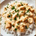 This Creamy Smothered Chicken and Rice recipe features tender chicken thighs or breasts cooked in a rich, savory mushroom and cream sauce, served over fluffy white rice. Infused with garlic, paprika, and thyme, it’s a comforting one-pan meal that’s perfect for a hearty dinner.
