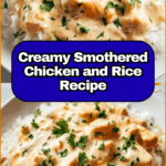 Creamy Smothered Chicken and Rice is a comforting, flavorful dish that combines tender chicken with a rich mushroom sauce served over fluffy white rice. This recipe is perfect for a cozy weeknight dinner and comes together with simple ingredients.