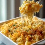 This classic Crispy Baked Mac & Cheese recipe delivers a creamy, cheesy pasta baked to golden perfection with a crunchy breadcrumb topping. Made with a blend of sharp cheddar, Gruyère, and mozzarella cheeses enveloped in a smooth béchamel sauce, then baked until bubbly and crisp, it’s comfort food at its finest for any occasion.