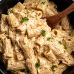 This Crockpot Garlic Parmesan Chicken Pasta is a creamy, comforting dish that comes together effortlessly. Tender chicken slow-cooked in a cheesy garlic sauce pairs perfectly with your favorite pasta for an easy weeknight dinner.