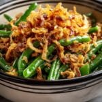 This Crockpot Green Bean Casserole is a comforting, easy-to-make side dish perfect for holidays or weeknight dinners. Combining tender green beans, creamy mushroom soup, and melted cheddar cheese, topped with crispy fried onions, this recipe delivers a classic casserole flavor with minimal effort using a slow cooker.