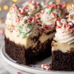 - Frost and Garnish: Spread the whipped cream evenly over the chilled cheesecake. Sprinkle peppermint chips or crushed candy canes on top for a festive crunch.