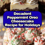 This Decadent Peppermint Cheesecake with Oreo Crust Delight is a festive and creamy treat perfect for the holiday season or any special occasion. Combining the rich flavor of cream cheese with refreshing peppermint and a crumbly Oreo crust, this dessert is both indulgent and visually stunning.