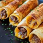 Keywords: Garlic Butter Beef Rollups, Cheeseburger Rollups, Ground Beef Tortilla Wraps, Easy Beef Recipes, Baked Beef Rollups