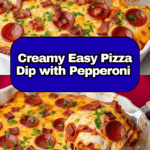 A creamy, flavorful Easy Pizza Dip perfect for game day or casual gatherings. This baked dip layers cream cheese, mozzarella, pizza sauce, pepperoni, and bacon for a delicious appetizer that’s easy to prepare and loved by all.