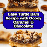 Easy Turtle Bars are a delightful dessert featuring a buttery crust topped with crunchy pecans, rich caramel, and melted milk chocolate. Finished with extra chopped pecans and a drizzle of caramel sauce, these bars combine sweet and nutty flavors into a gooey, irresistible treat that’s perfect for any occasion.