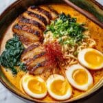 This Fiery Chicken Ramen with Creamy Garlic Sauce combines bold, spicy flavors with a rich, velvety finish. It’s a satisfying and comforting dish that’s perfect for a quick weeknight dinner or whenever you crave something warm and flavorful.