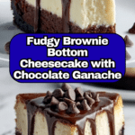 This Fudgy Brownie Bottom Cheesecake features a rich, dense brownie layer topped with a creamy, smooth cheesecake filling. Finished with a luscious chocolate ganache, this dessert combines the best of two classic treats into one indulgent and elegant dish perfect for any occasion.