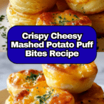 These Golden Cheesy Mashed Potato Puff Bites transform leftover mashed potatoes into irresistibly crispy, fluffy, and cheesy snacks. Perfect for appetizers, side dishes, or finger foods at parties, these puffs are golden on the outside and soft on the inside, combining creamy mashed potatoes with melted cheese and a crisp crust. Easy to make and a great way to reduce food waste by using leftover mash, this recipe guarantees crowd-pleasing bites packed with comforting flavors.