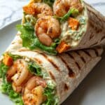 7. Serve: Slice each wrap in half diagonally and serve immediately while the shrimp are warm and the flavors fresh.