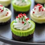 Keywords: Grinch Mini Cheesecakes, Christmas desserts, Oreo crust cheesecake, holiday recipes, green cheesecake, mini cheesecakes