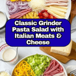A refreshing and hearty Grinder Pasta Salad featuring rotini pasta, oven roasted turkey, pepperoni, salami, provolone, parmesan, and crisp vegetables, all tossed in a tangy, homemade pepperoncini dressing. Perfect for potlucks, picnics, or a satisfying make-ahead meal.