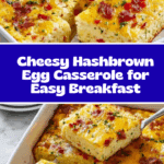 This hearty Hashbrown Egg Casserole combines crispy shredded hashbrowns, sautéed vegetables, savory bacon, and a rich blend of cheddar and mozzarella cheese, all baked together in a custardy egg and cream mixture. Perfect for breakfast, brunch, or a comforting anytime meal, this casserole is easy to prepare and delivers a delicious, satisfying dish with a golden, bubbly top and tender center.