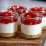 These High-Protein Cheesecake Jars are a delicious, no-bake treat combining creamy Greek yogurt, cream cheese, and protein powder atop a crunchy graham cracker crust. Perfect for a healthy dessert or snack, they are easy to prepare, customizable with fresh toppings, and packed with protein to keep you satisfied.