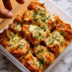 - Garnish and Serve: Sprinkle fresh chopped parsley over the cheesy chicken and potatoes. Serve warm and enjoy your delicious high-protein creamy garlic cheesy chicken & potatoes!