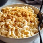 - Bake (Optional): For a crunchy topping, preheat the oven to 400°F (200°C). Transfer mac and cheese to a buttered baking dish, sprinkle toasted breadcrumbs evenly on top, and bake for 10 minutes until bubbly and golden browned.