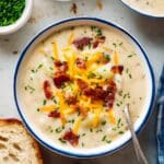 - Serve: Serve the soup hot, garnished with crumbled bacon, shredded cheese, and chopped green onions for extra flavor and texture.