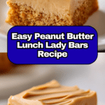 Peanut Butter Lunch Lady Bars are a nostalgic treat featuring a soft, chewy base layered with creamy peanut butter frosting. These bars are perfect for a sweet snack, lunchbox dessert, or anytime indulgence.