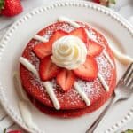 Red Velvet Pancakes with Cream Cheese Glaze and Fresh Strawberries Recipe
