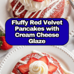 Keywords: red velvet pancakes, cream cheese glaze, breakfast recipe, brunch pancakes, fluffy pancakes, cocoa pancakes