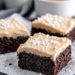 Salted caramel frosting complements these bars perfectly, balancing the chocolate with a rich, salty-sweet flavor. You can use store-bought or homemade frosting depending on your preference.