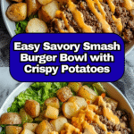 The Savory Smash Burger Bowl is a delicious twist on a classic burger, combining crispy potatoes, caramelized onions, and juicy smashed beef in a convenient bowl. This hearty dish is layered with flavorful cheese, a tangy sauce, and fresh greens, making it perfect for a satisfying meal anytime.