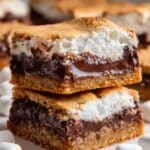 Keywords: S’mores cookie bars, s’mores dessert, chocolate marshmallow bars, baked s’mores, Hershey bar recipe, graham cracker bars