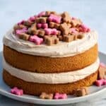 7. Frost and Decorate: Once the cake is completely cool, spread the yogurt frosting evenly over the top using a knife or offset spatula. Optionally, decorate with dog-safe treats or a sprinkle of crushed dog biscuits for an extra special touch.