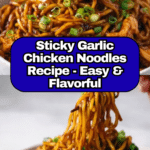 Keywords: Sticky Garlic Chicken Noodles, garlic chicken noodles, honey garlic chicken, stir-fry chicken noodles, easy chicken noodle recipe