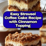 This Streusel Coffee Cake is a moist, tender cake layered with a buttery cinnamon-sugar streusel topping. Perfect for breakfast, brunch, or an afternoon treat with coffee, this cake combines the richness of sour cream with a crunchy, sweet crumb topping for a delightful texture and flavor experience.