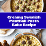 Keywords: Swedish meatballs, Pasta bake, Comfort food, Beef and pork meatballs, Creamy gravy, Baked pasta dishes