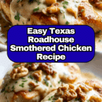 Texas Roadhouse Smothered Chicken is a flavorful, comforting dish featuring tender chicken breasts topped with sautéed vegetables, crispy bacon, melted cheddar cheese, and a creamy ranch drizzle. Perfect for a hearty weeknight dinner, this recipe delivers a satisfying combination of textures and savory flavors.